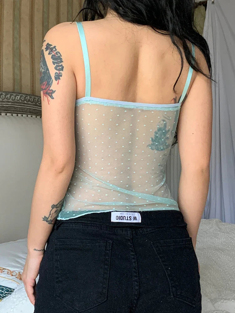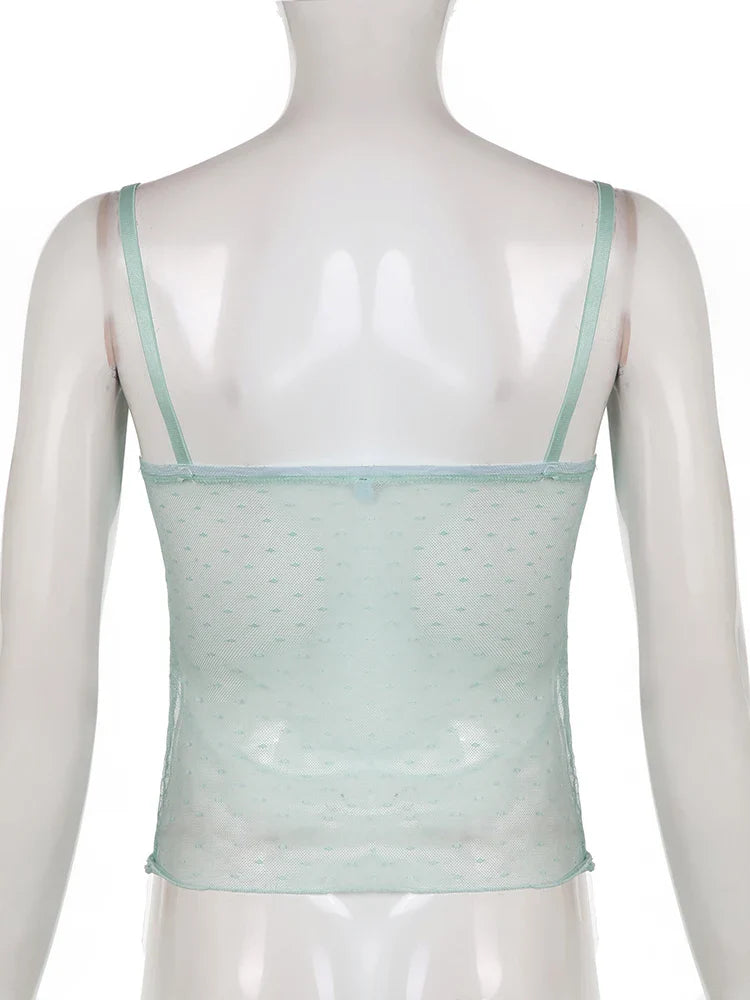 Dot Print Lace Corset Women Flower Appliques Milkmaid Sexy See Through Crop Top Y2K Camis Transparent Aesthetic Tanks