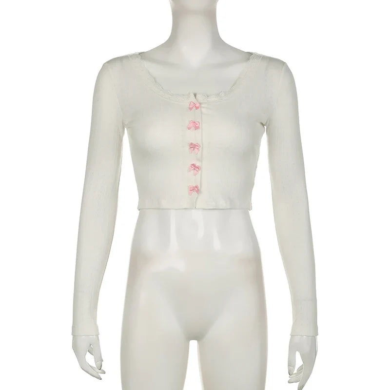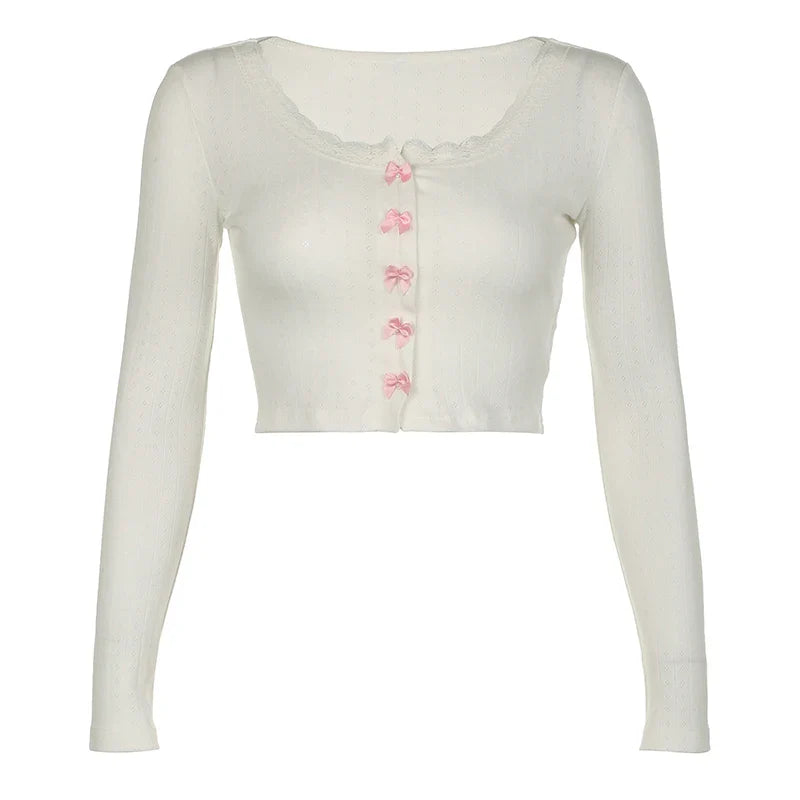Kawaii Multi Bow Single-breasted Knitted Top Solid Japanese Lolita Style Cropped Tops Sweet Barbiecore T-shirt y2k Tees