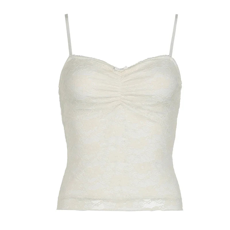Sweet Floral Lace Patchwork Crop Top White Black Coquette Aesthetic Double Layer Folds Camis Y2K Cute Sexy Vest Women
