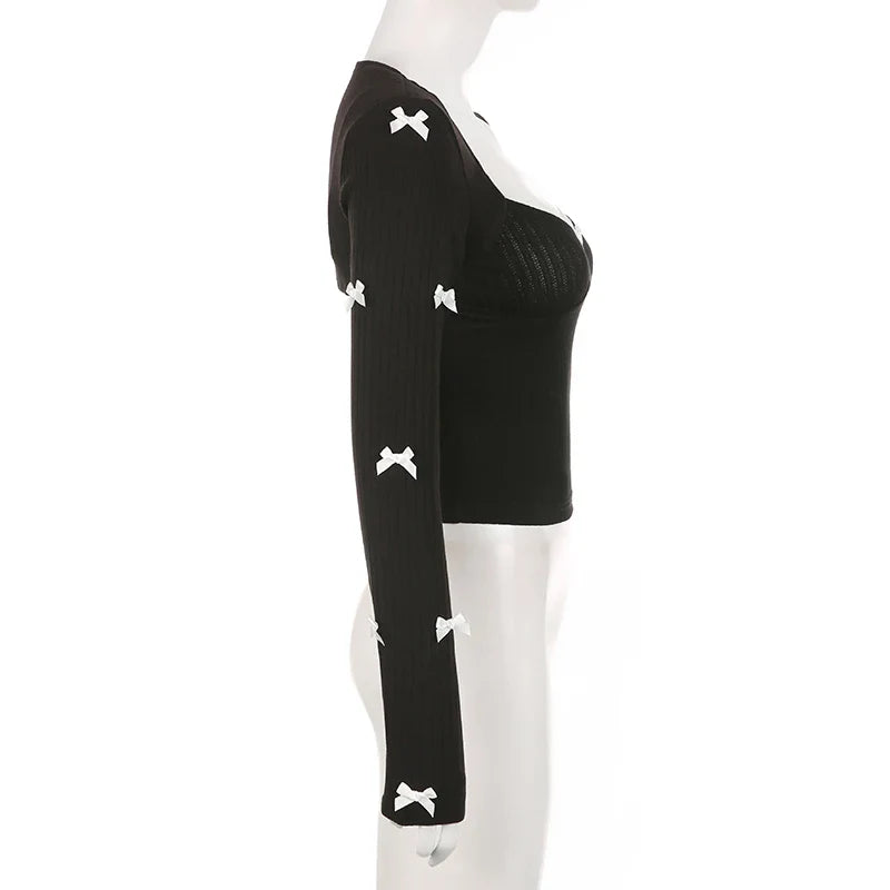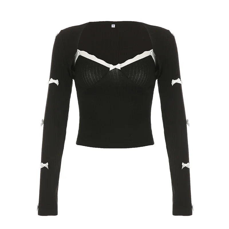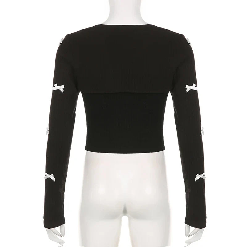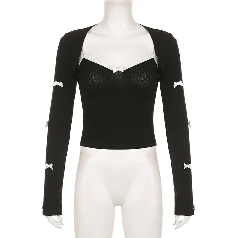 Sweet Multi-bow Jacquard Knit Pullovers and Cami Two Piece Set Women y2k Aesthetic Lace Patchwork Crop Top Suit Autumn