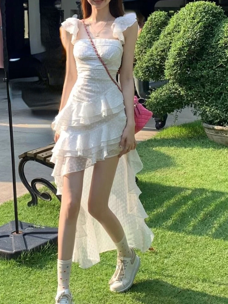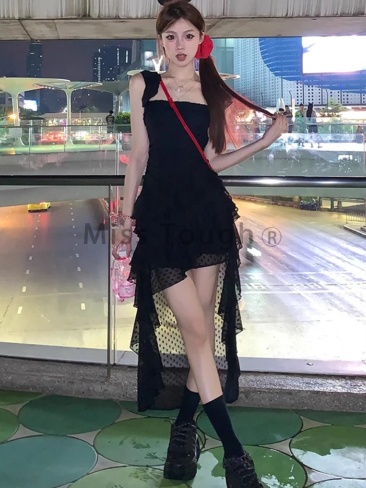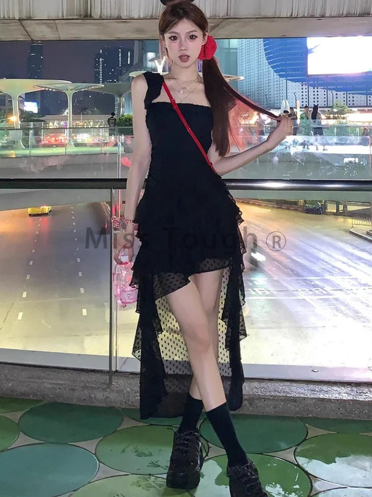 Summer Sexy Y2k Vintage Mini Dress Women Irregular Korean Fashion Casual One Piece Dress Female Tierred Elegant Chic Clothes New