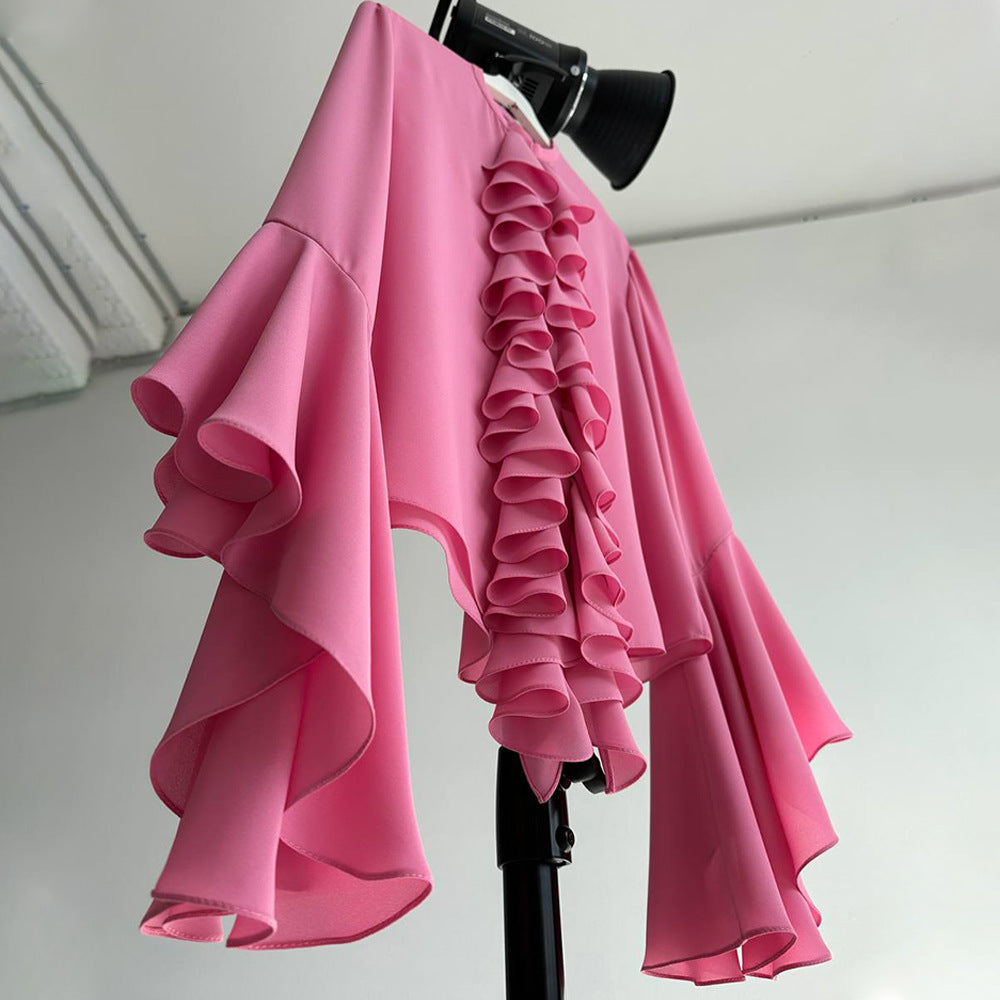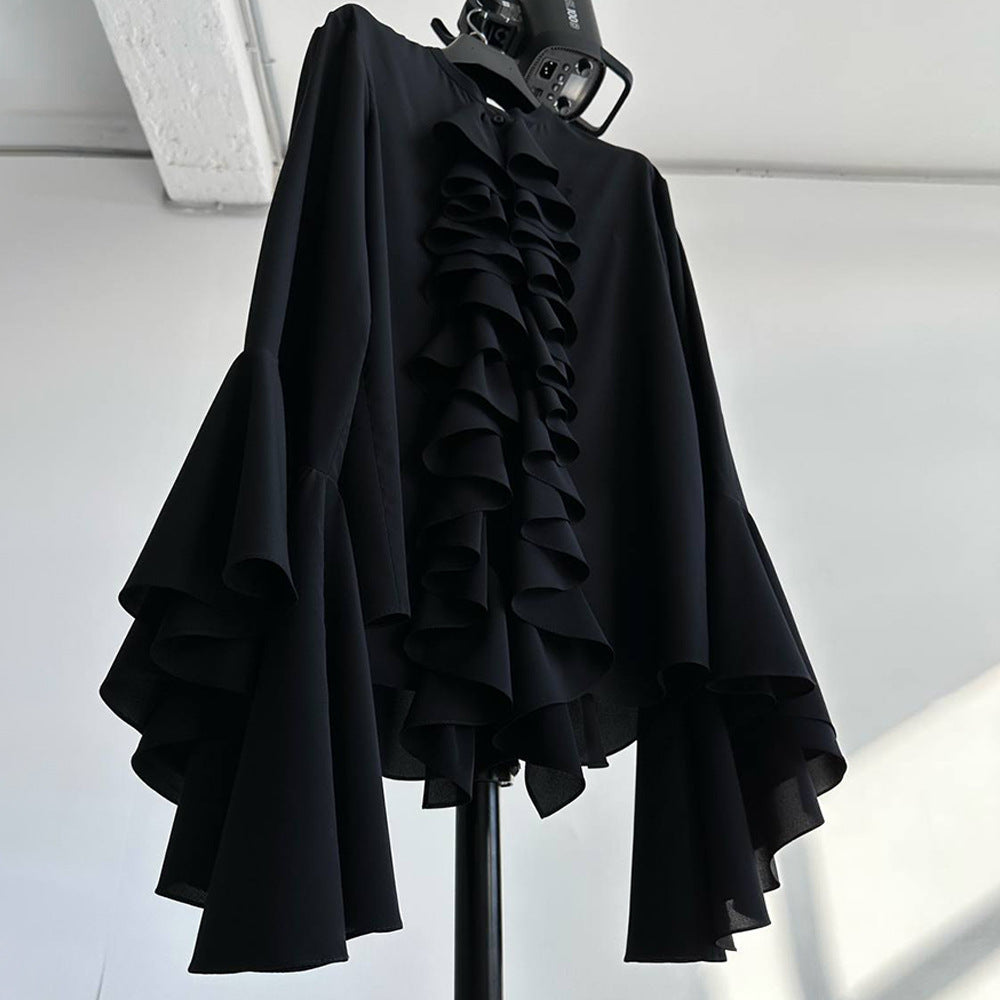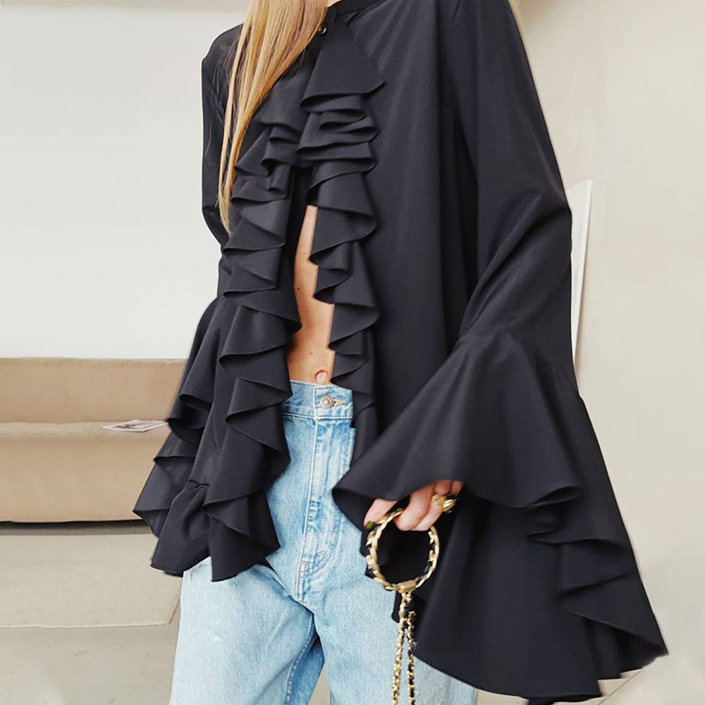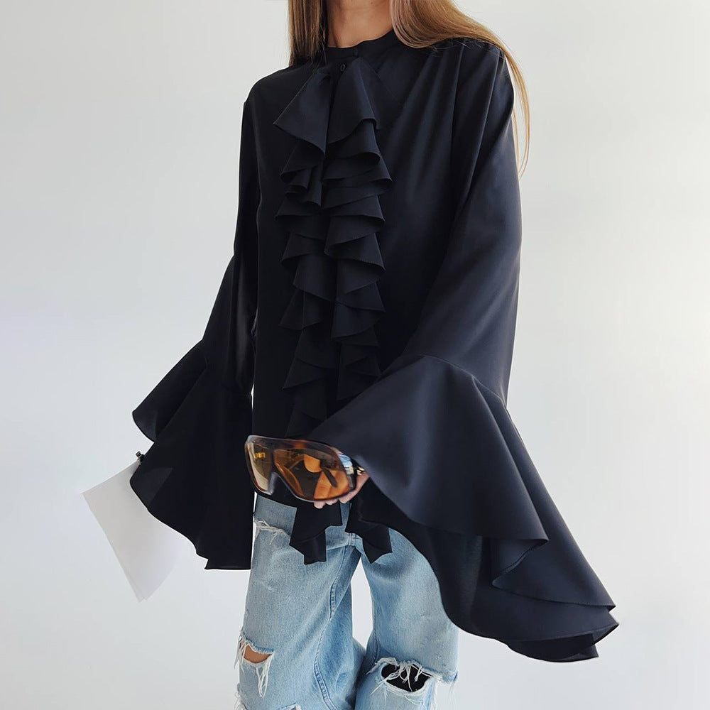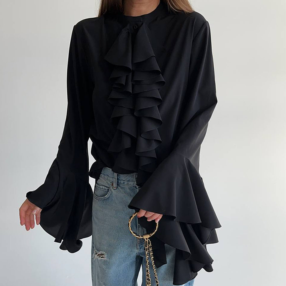 This lightweight, flowing chiffon blouse is perfect for spring and summer, offering a breezy and comfortable feel for any occasion.