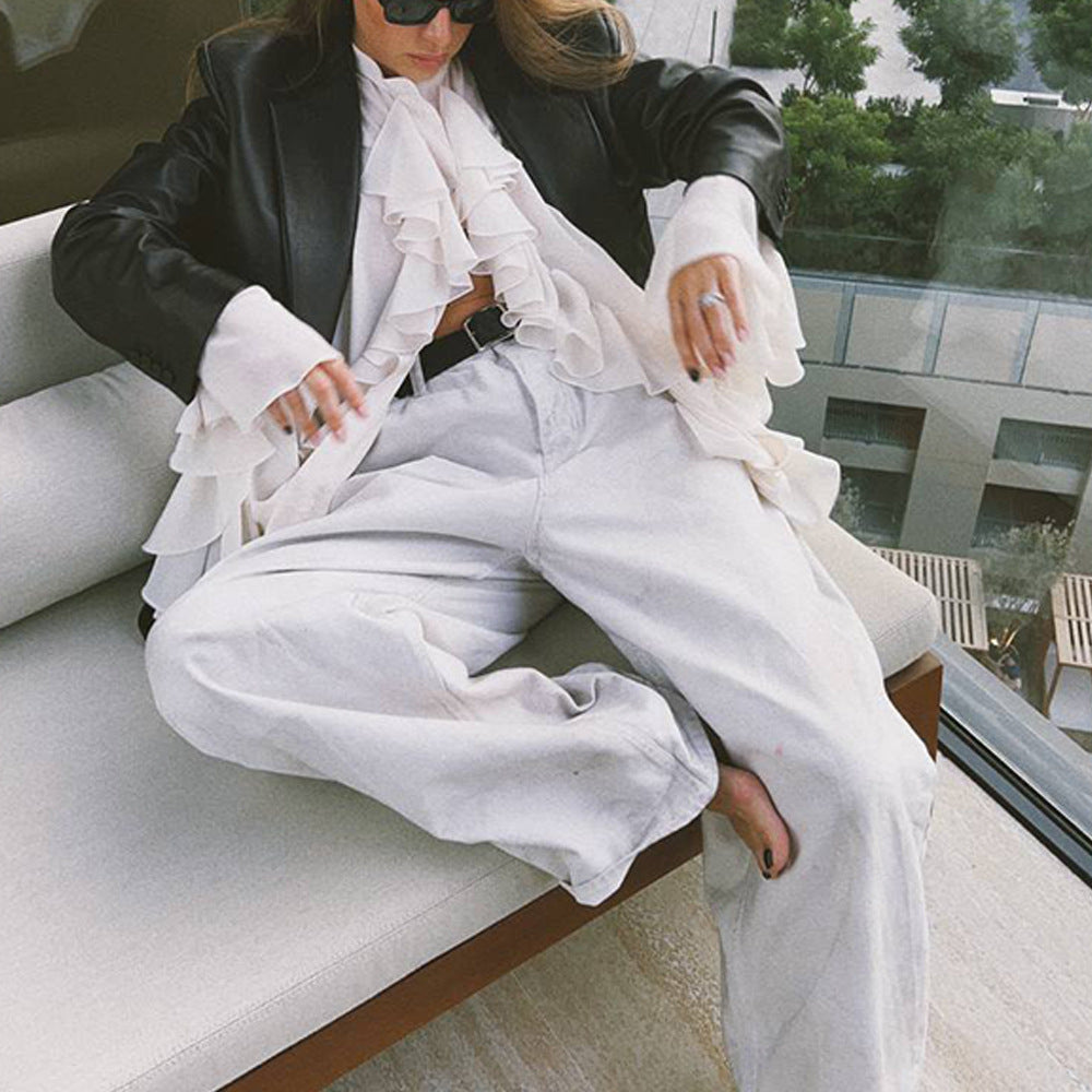 Elevate your wardrobe with this effortlessly chic white chiffon blouse, ideal for creating a variety of looks from casual to elegant.