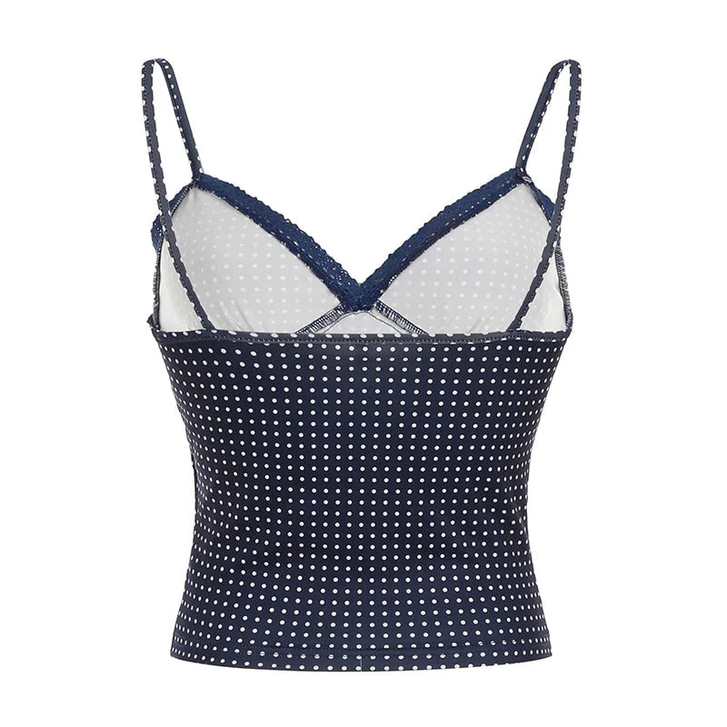 y2k Polka Dot Crop Top Casual Lace Stitching Sleeveless Skinny Strap Tops Women Basic Camisole Streetwear Tees Aesthetic