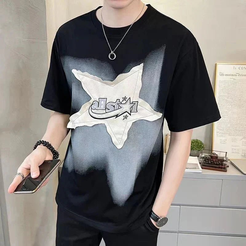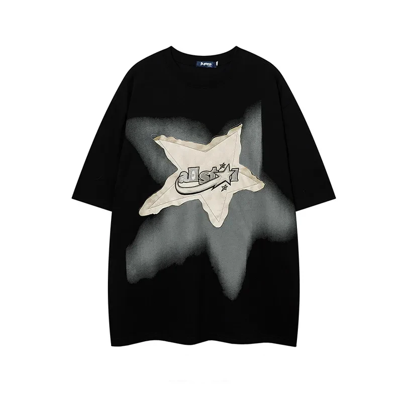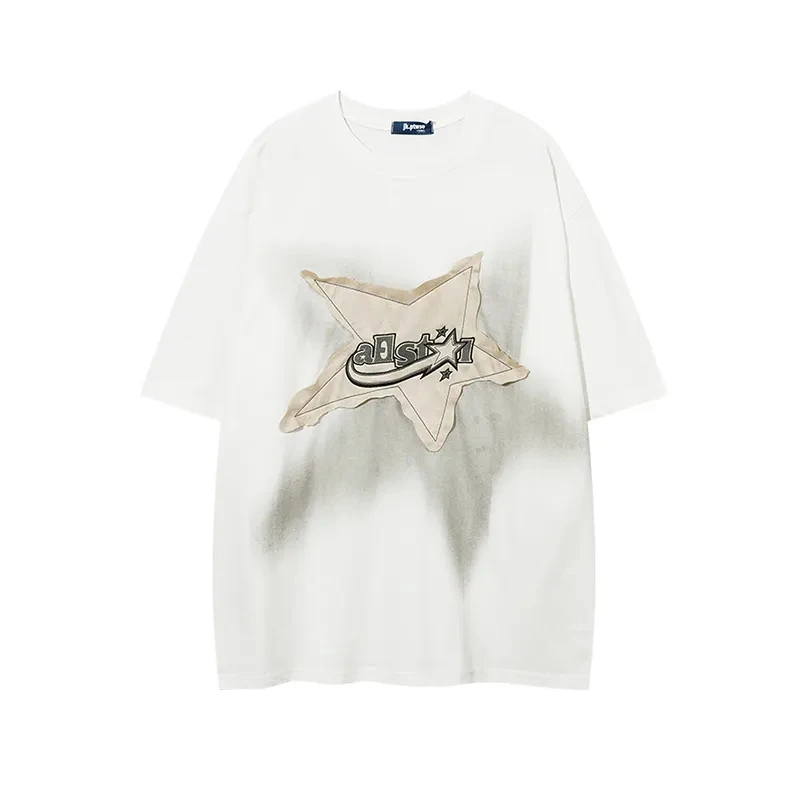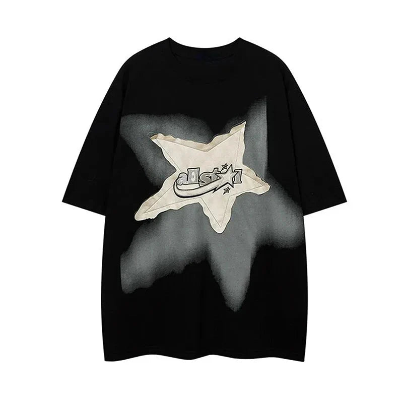 Y2K Vintage Star Printing Women T Shirt Bf Summer 100% Cotton Fashion Loose Streetwear Casual Tops Harajuku Hip Hop T Shirt